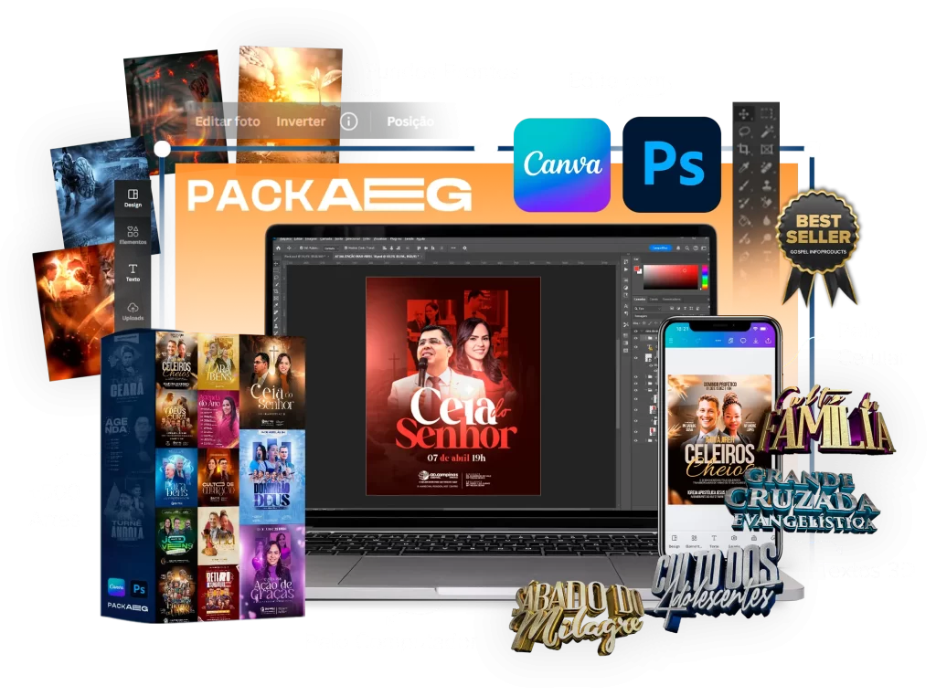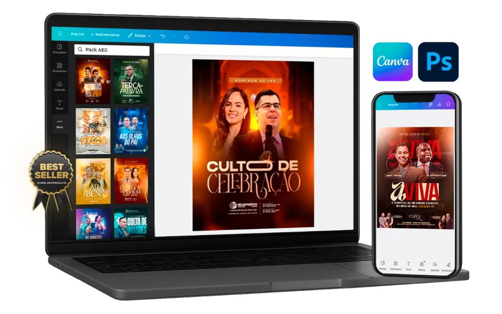 Tenha acesso a + de 600 Artes profissionais, prontas para editar no celular ou computador, através do Canva, Photoshop ou Photopea.